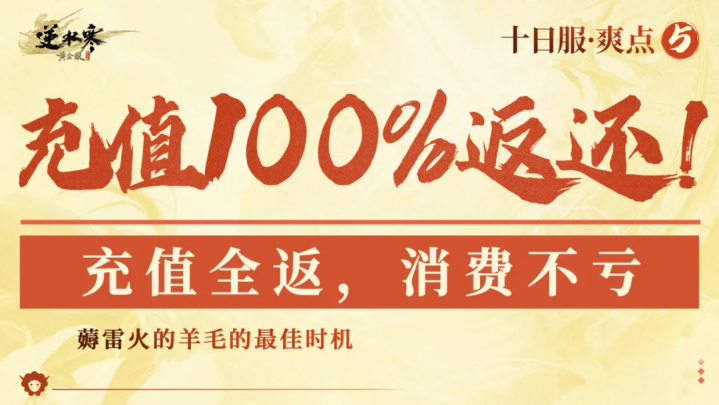 游戏中刷怪会掉落现金红包,使用就能直接提现;官方还有幸运抽奖,终极锦鲤玩家一人可独享50万元宝奖励;在十日服存续过程中玩家们的所有充值,也会在十日服关服后100%返还至玩家指定的服务器;十日服结束后,官方会根据玩家战力排名,给与包括祥瑞坐骑、养成道具和黄金流派礼盒等珍稀好物……