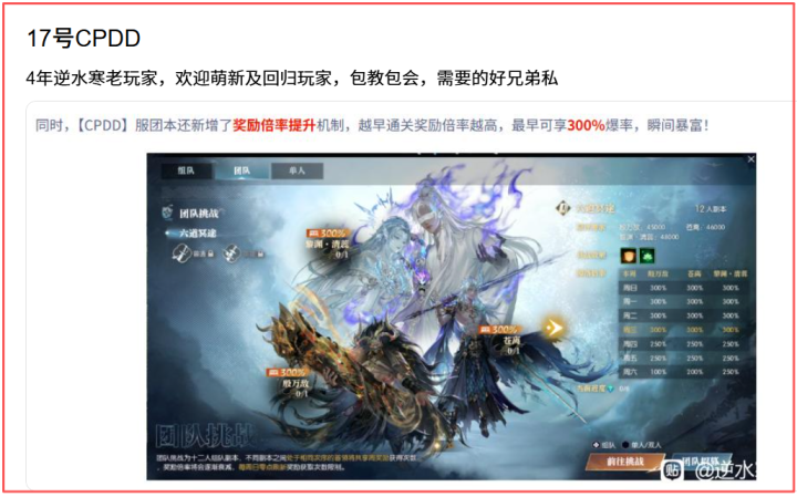 像是《逆水寒》在过去一年多的时间里,靠的就是推出黄金服,让玩家们能够边游戏边赚钱,以此吸引了为数众多的玩家。但黄金服再好,也需要不断吆喝才能让更多玩家认知,十日服,就是黄金服最好的广告。